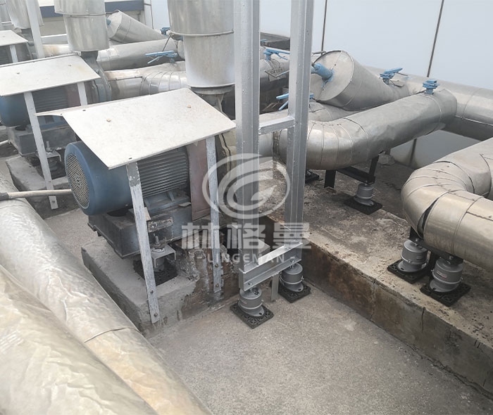 (4)空調(diào)風(fēng)冷熱泵和冷卻水泵及管道支架減振。